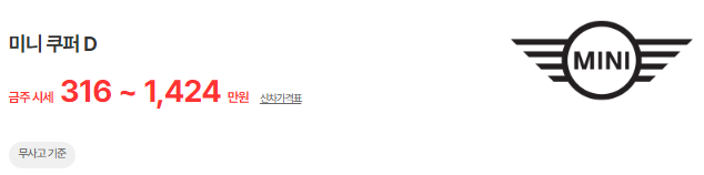 아래는 미니 쿠퍼 중고차 시세표입니다.